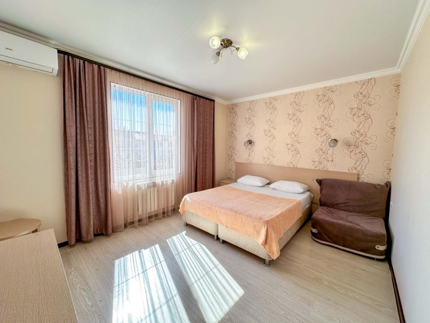 В номере: кровать двуспальная или односпальные, прикроватные тумбочки, платяной шкаф для одежды, журнальный столик, туалетный столик с зеркалом, сплит-система, холодильник, телевизор, санузел, совмещенный с душем. Номера с видом на красивый двор и выходом на общий балкон. В основном корпусе на 3-м и 4-м этажах балкон в номере. Дополнительное место: кровать, кресло-кровать или евро-раскладушка.