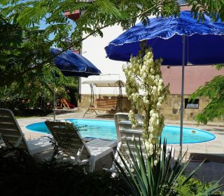 Расположение: в юго-восточной части нового района г. Судак, в живописной долине горы Алчак, рядом с Судакским аквапарком. Район расположен в стороне от шума и суматохи центральных улиц. По пути к морю много кафе и столовых, рынок, магазины с курортными товарами. В нескольких минутах ходьбы расположен продуктовый магазин.